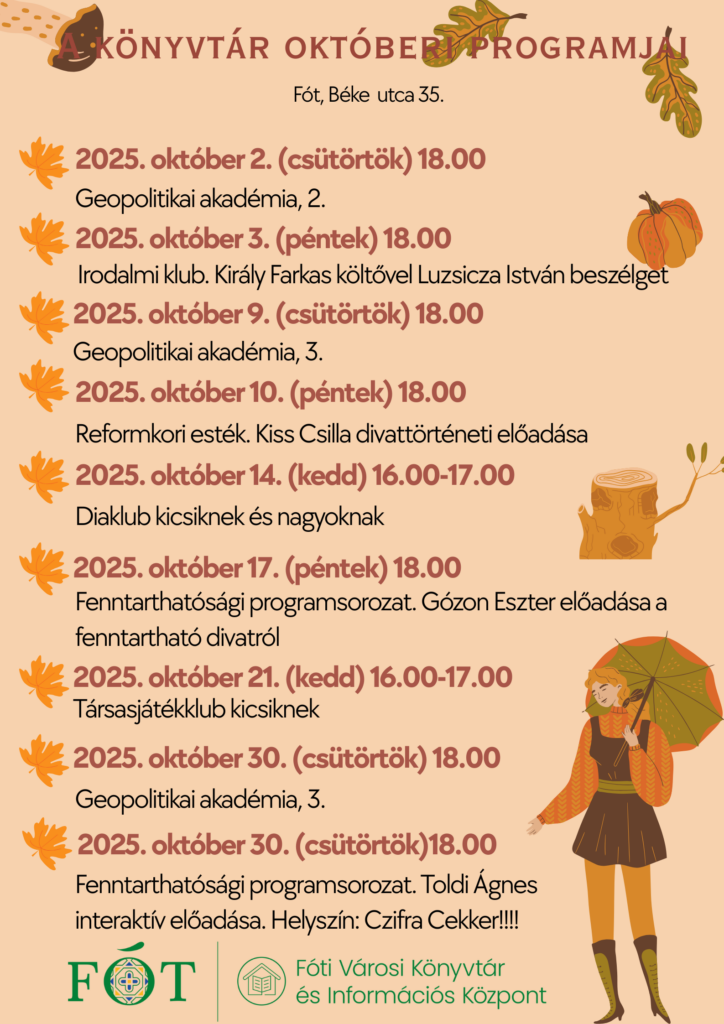 A könyvtár októberi programjai